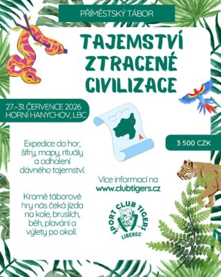 Kdy: 27.–31. 7. 2026 Kde: Horní Hanychov, Liberec Za kolik: 3 500 CZK